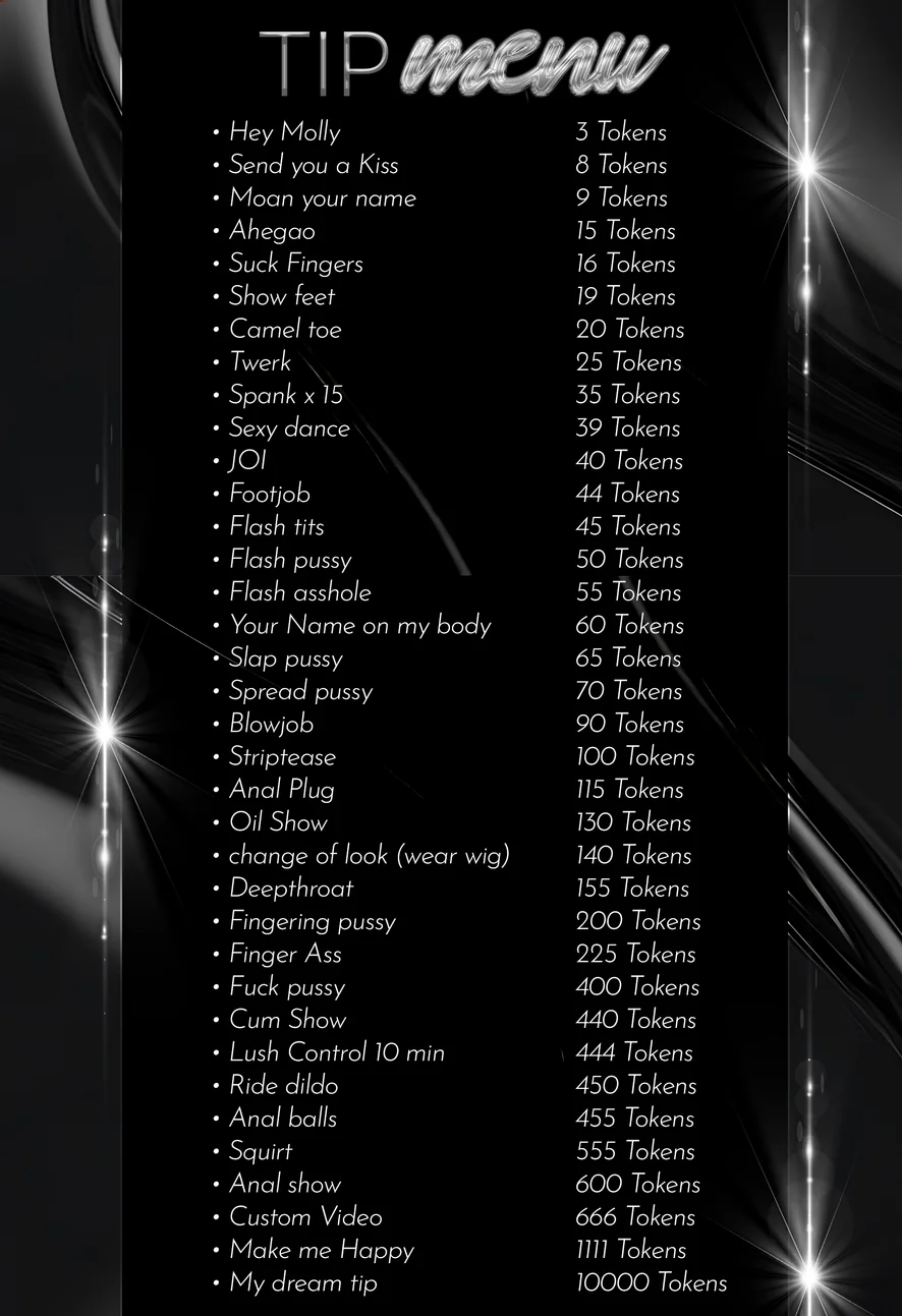 Ahegao, Camel Toe, Twerk, Doggy Style, Spanking, Erotic Dance, Dirty Talk, Striptease, Humiliation, Topless, Flashing, Blowjob, Fingering, Dildo or Vibrator, Deepthroat, Sex Toys, Tittyfuck, Oil Show, Nipple Toys